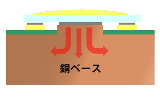 HOME > 銅ポスト基板 メタル基板 TSS大電流基板 バスバー内蔵基板 銅ポスト基板 銅ベース基板において、銅ベース材の一部を回路層まで露出することで、LEDやFET等の放熱パッドから直接熱を奪います。 見た目や使い方は銅ベース基板と変わりませんが、銅の熱伝導率で効率良く熱輸送できます。