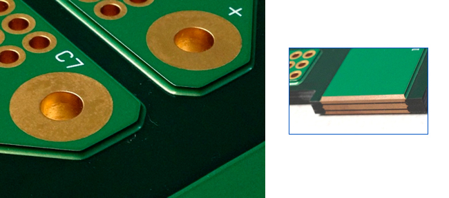 さらに弊社の放熱対策基板であるメタルベース基板、メタルコア基板(アルミ、銅)との組み合わせにより、用途は限りなく広がります。基本的に回路の厚さは2000μmまでとしておりますが、試作案件では回路厚3mmの超大電流銅ベース基板も実績があります。(写真右下)